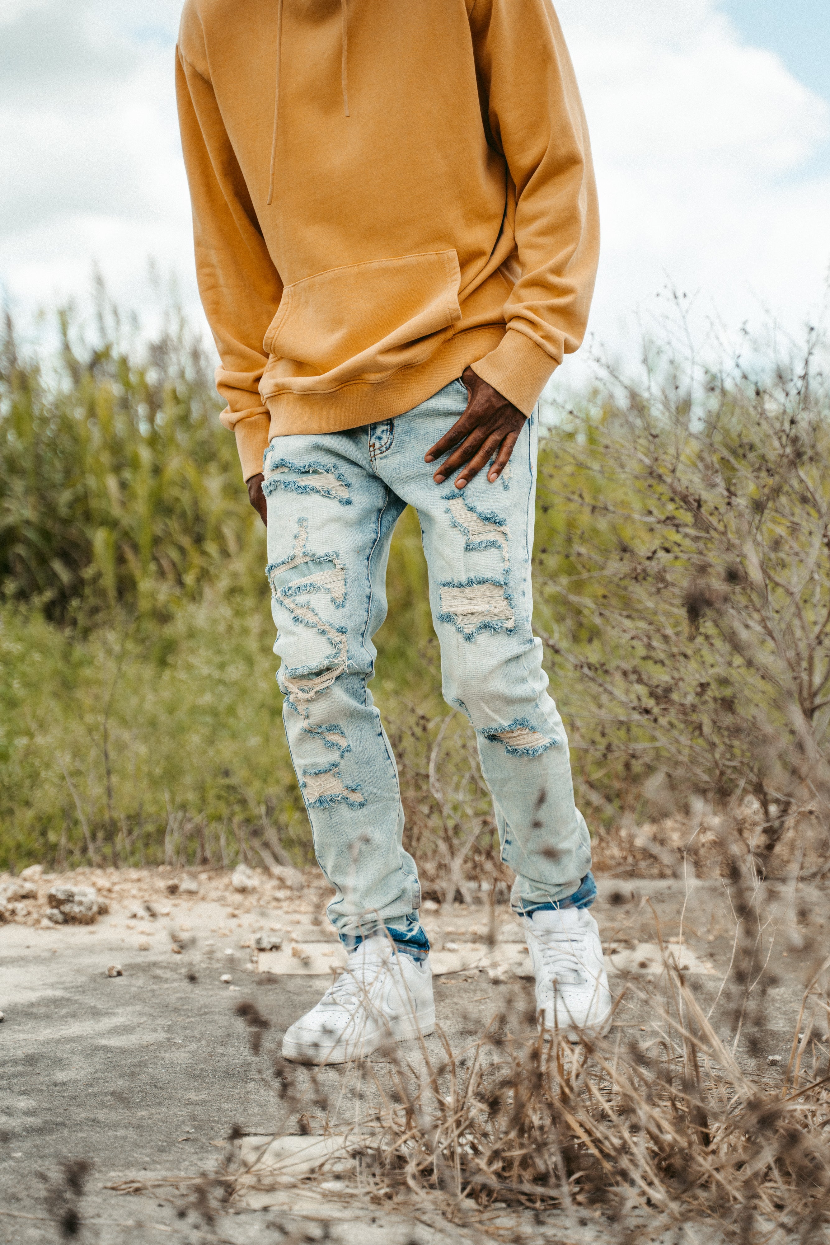 These jeans are all about that lived-in vibe, with heavy distressing that screams streetwear attitude. The light wash gives off vintage feels, while the relaxed fit keeps things comfortable but on-point. Rock 'em with confidence.